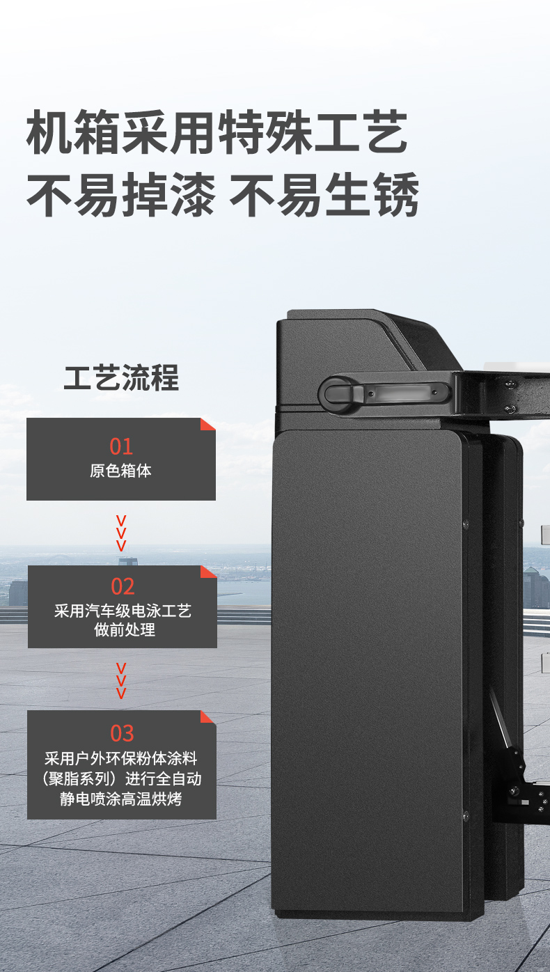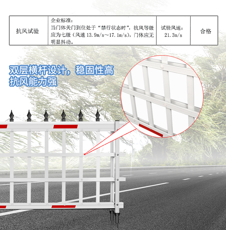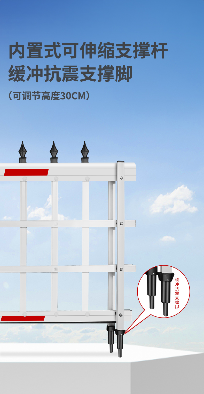 標(biāo)配防風(fēng)座,固定閘桿支撐腳,遇強風(fēng)有效減小閘桿損壞幾率